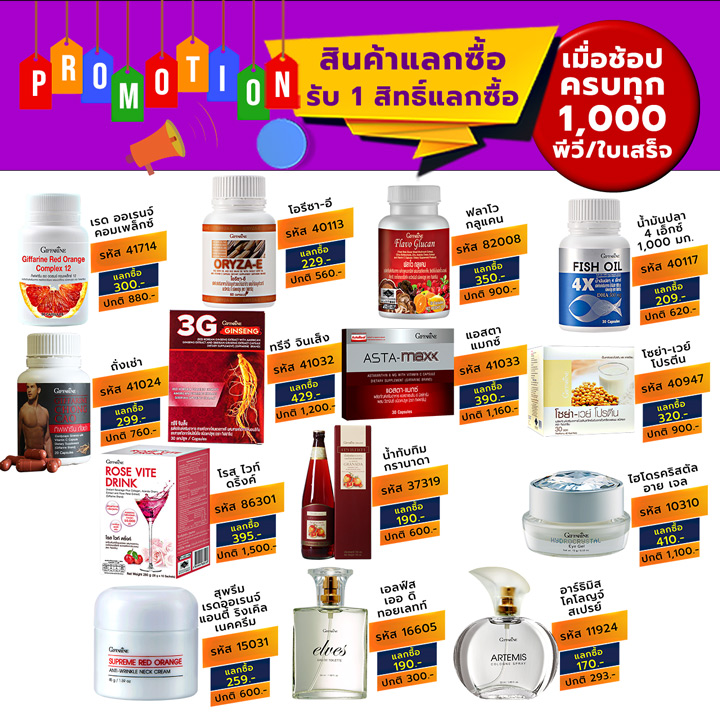 🛍️ เมื่อซื้อสินค้าครบทุก 1000 พีวี / ใบเสร็จ รับ 1 สิทธิ์เเลกซื้อ