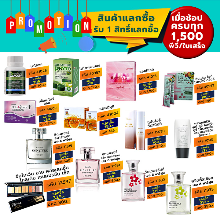 🛍️ เมื่อซื้อสินค้าครบทุก 1500 พีวี / ใบเสร็จ รับ 1 สิทธิ์เเลกซื้อ
