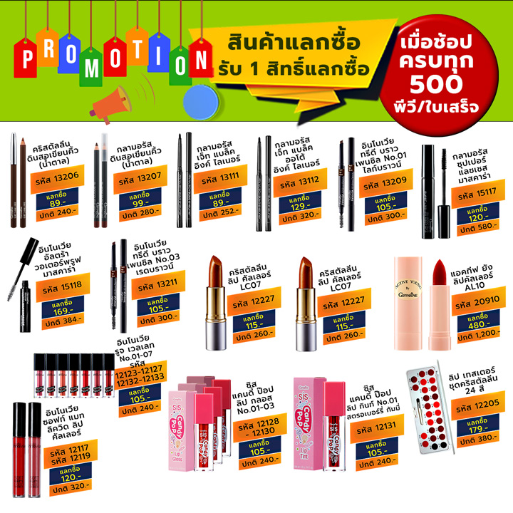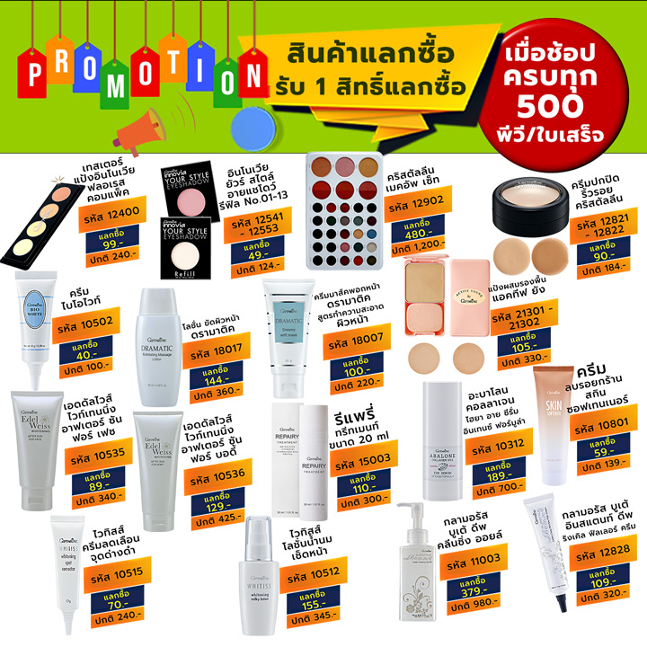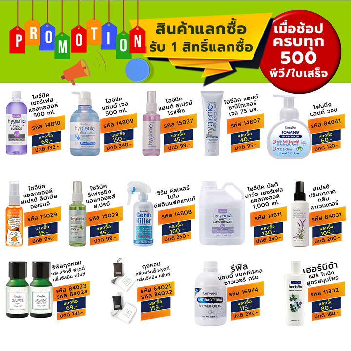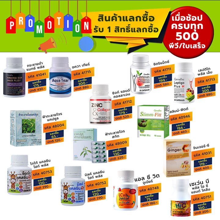 🛍️ เมื่อซื้อสินค้าครบทุก 500 พีวี / ใบเสร็จ รับ 1 สิทธิ์เเลกซื้อ