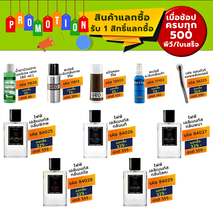 🛍️ เมื่อซื้อสินค้าครบทุก 500 พีวี / ใบเสร็จ รับ 1 สิทธิ์เเลกซื้อ