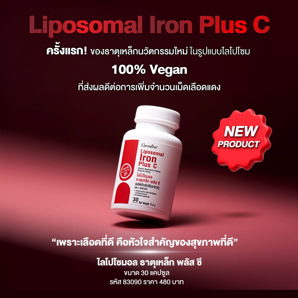 ธาตุเหล็กนวัตกรรมใหม่ ในรูปแบบโลโปโซม 100% Vegan ที่ส่งผลดีต่อการเพิ่มจำนวนเม็ดเลือดแดง ไม่มีส่วนผสมจากสัตว์ และบรรจุในรูปแบบแคปซูลพืช (Veggie Capsule) ตอบโจทย์สายทานมังสวิรัติ เจ และวีแกน